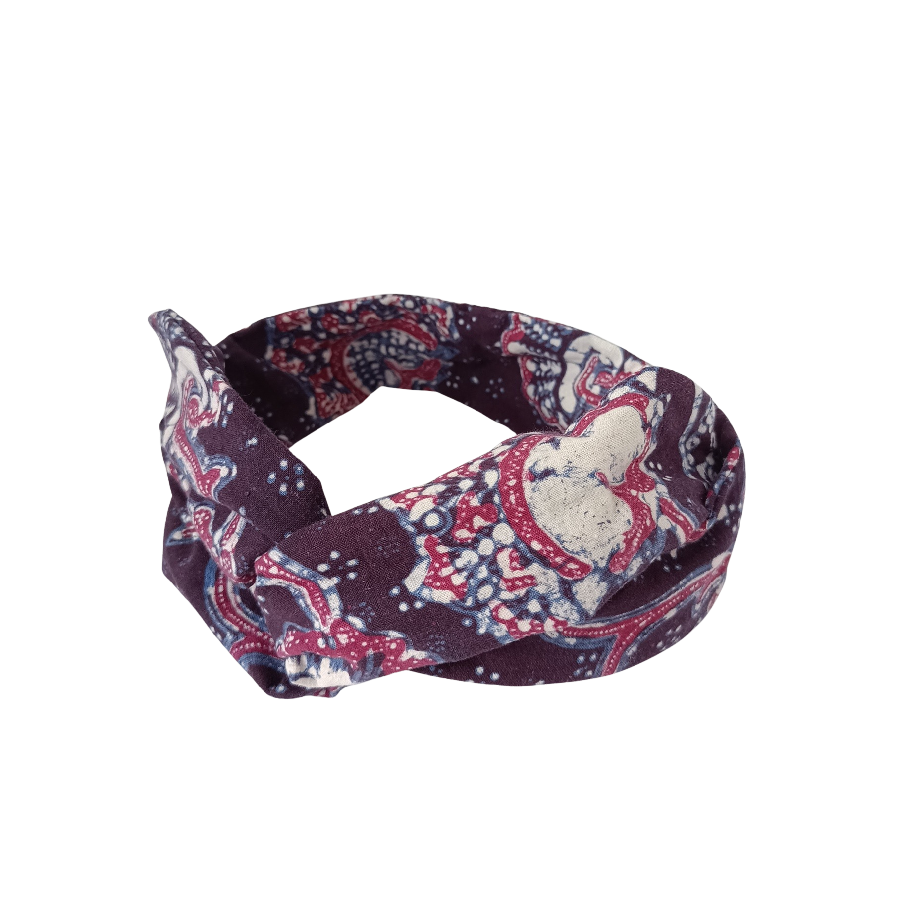 Bandana haarband met draad batik donkerpaars, wit, blauw